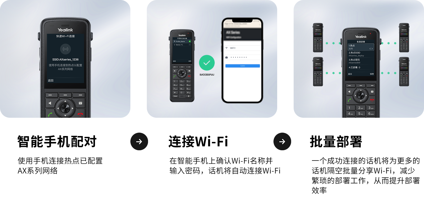億聯(lián)AX系列Wi-Fi話機(jī)均使用統(tǒng)一固件,支持通過億聯(lián)設(shè)備管理平臺統(tǒng)一管理,