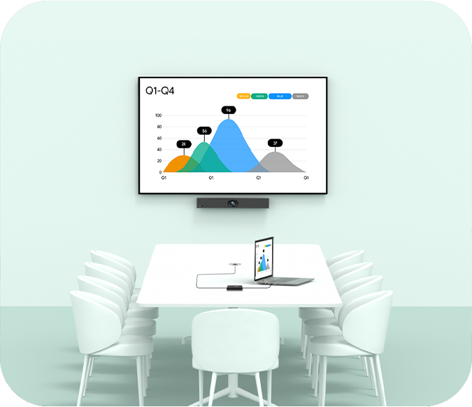 億聯(lián)A20支持有線BYOD模式。只需一根USB-C線連接電腦及億聯(lián)輔流盒子VCH51,即可快速調(diào)用會(huì)議室音視頻設(shè)備,實(shí)現(xiàn)高清穩(wěn)定的內(nèi)容投屏共享,開啟專業(yè)音視頻會(huì)議體驗(yàn)。